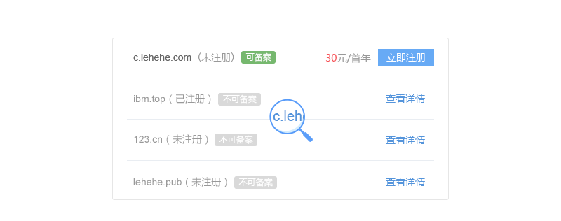 通过搜索,可以对未注册的域名进行注册购买,获得属于自己的域名。